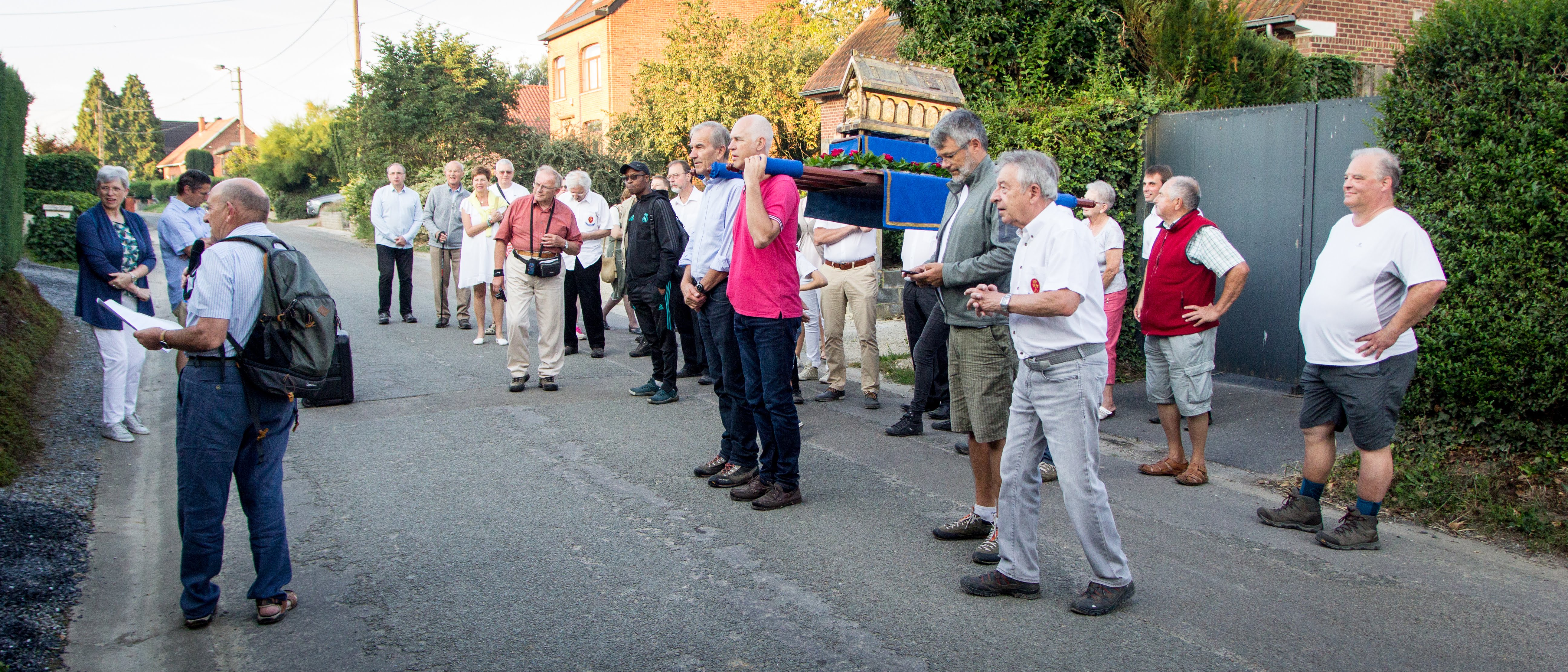 On raconte aujourd’hui sur la belle Place de Saint-Symphorien, à l’ombre des tilleuls, qu’en l’an de grâce mil neuf cent quatre-vingt, durant l’été, votre hôte sillonnait les villages de l’entité de Mons en quête d’un lopin de terre pour s’établir. Un jour, quittant ce qui s’appelait encore la chaussée de Binche, il aboutit au chemin Saint-Pierre, anciennement dénommé « de Cantraine ». Il fut ébloui par l’aspect champêtre des lieux et envahi par leur quiétude. Il sut, à cet instant, qu’il avait trouvé son village. Quelques mois plus tard, le chemin Saint-Pierre accepta de l’adopter. Il était heureux et l’est encore, dit-on sous les tilleuls.