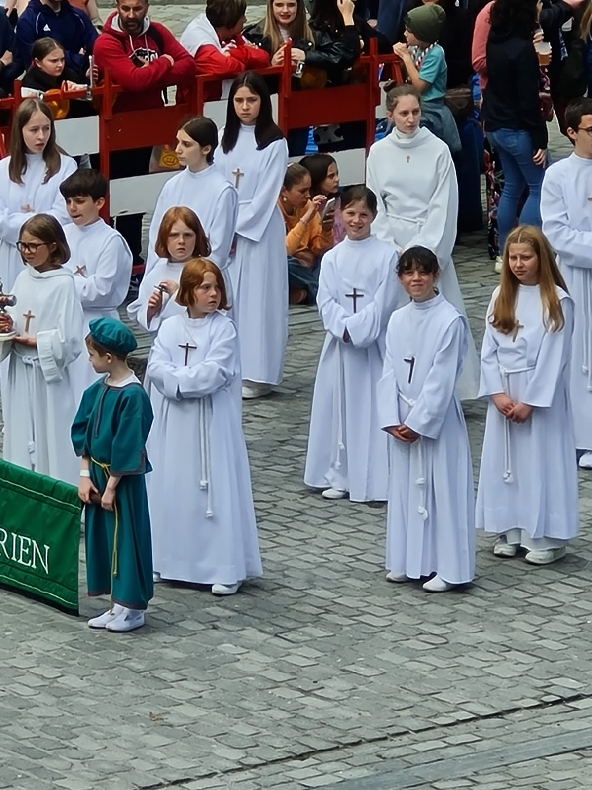Protéger des enfants qui étaient bien présents pour cette procession. Même si le culte religieux n’attire plus autant que par le passé, les organisateurs ont tout de même décidé de mettre les enfants au cœur de ce cortège. Un choix logique pour transmettre les valeurs de partage et d’intégrité de Saint-Ghislain.