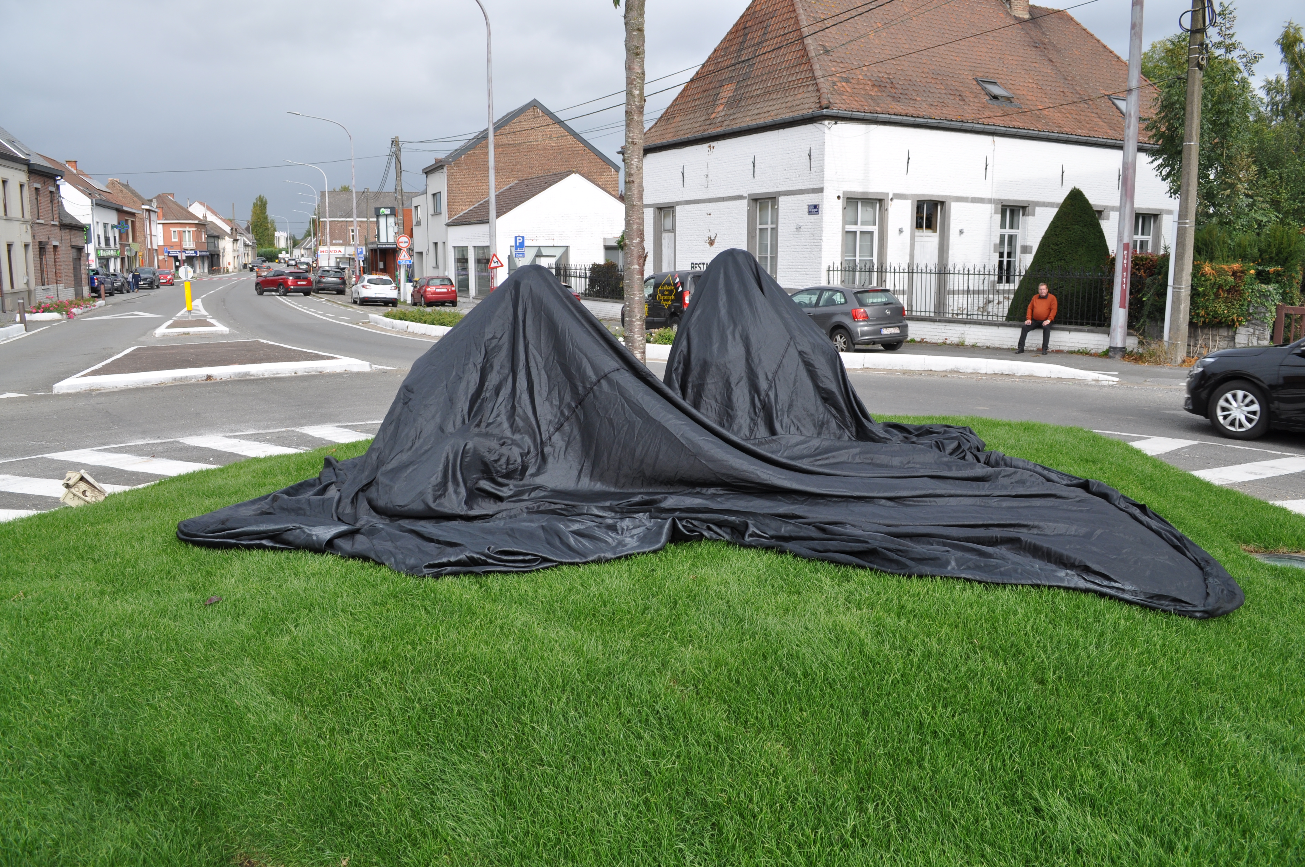 2 jeunes soldats désarmés au pied d’un cerisier du Japon : c’est la sculpture qui a pris place au rond-point de Saint-Symphorien. Un symbole important de passage et de transmission à 2 pas du cimetière militaire de Saint-Symphorien. L’objectif de l’oeuvre de Didier Mahieu est de donner une porte d’entrée aux passants à l’histoire de guerre.